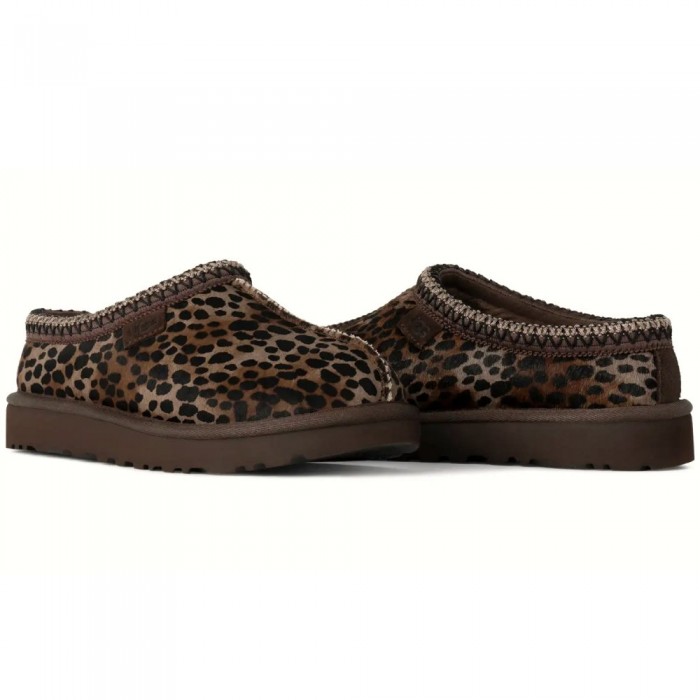Тапочки UGG Tasman Slippers Caspian Burnt Cedar Leopard Print — сочетание фирменного дизайна и максимального комфорта. Модель выполнена из натуральной овчины и замши, дополнена тёплой подкладкой и знаменитой окантовкой Tasman. Леопардовый принт добавляет образу яркий, трендовый акцент. Подошва устойчивая и лёгкая, подходит для носки дома и на улице. Идеальны для прохладного сезона.
