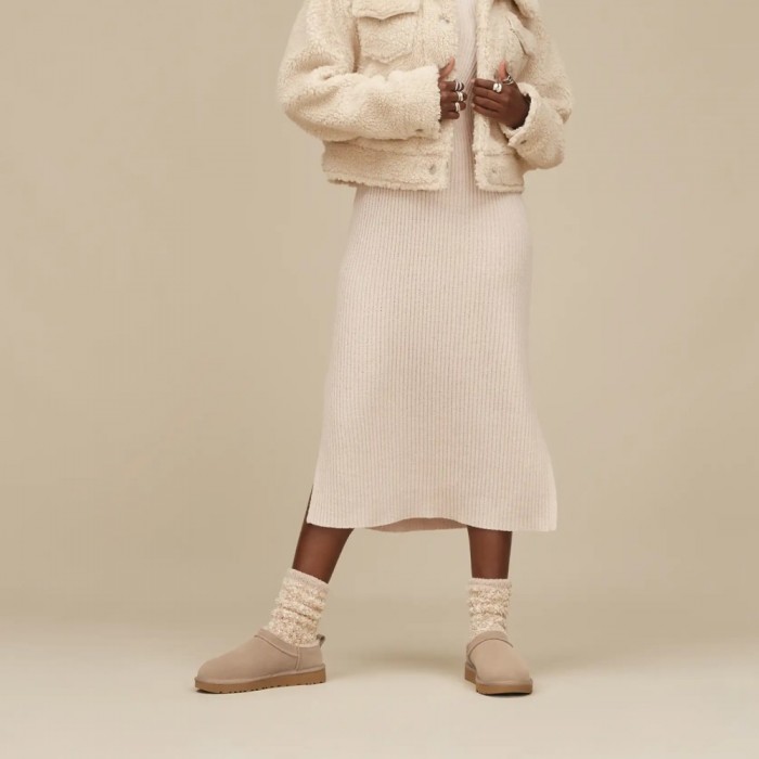 UGG Women’s Classic Micro Sand — стильные ультракороткие угги в универсальном песочном оттенке. Выполнены из натуральной замши и овчины UGGplush, обеспечивающей тепло и комфорт. Лёгкая подошва Treadlite гарантирует мягкую амортизацию и уверенное сцепление.